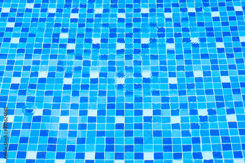 Fototapeta premium Swimming pool bottom ceramic mosaic blue and white.