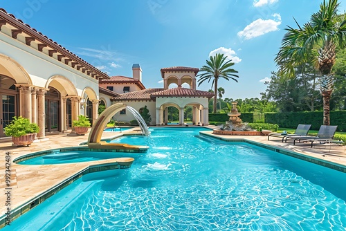 Fototapeta premium Swimming pool in a luxury villa on sunny day with blue sky