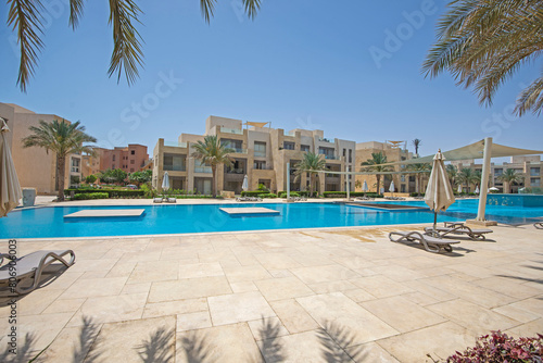 Obraz premium Swimming pool in tropical luxury apartment resort