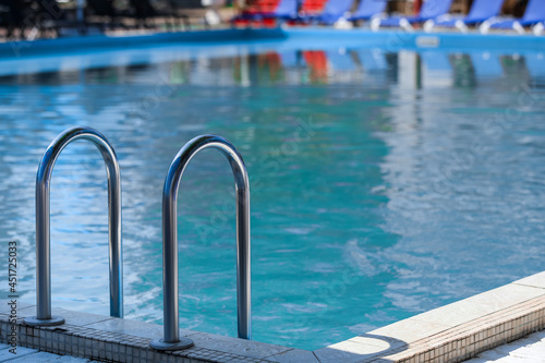 © Pixel-Shot, Naklejka premium Swimming pool with stair at sea resort