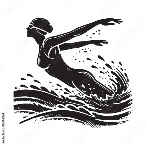 Obraz premium Swimming Silhouette Vector Illustration, Solid White Background.