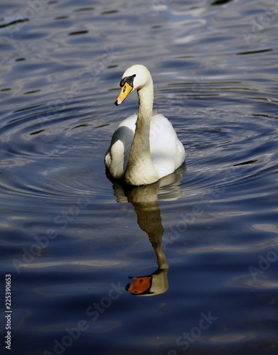 © drewrawcliffe, Obraz premium Swimming Swan reflections