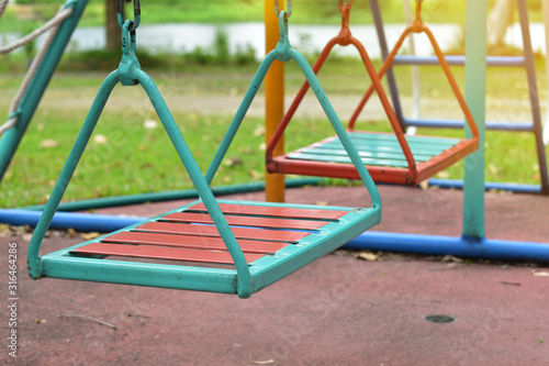 Fototapeta premium swing steel seat in playground for kid playing in outdoor park