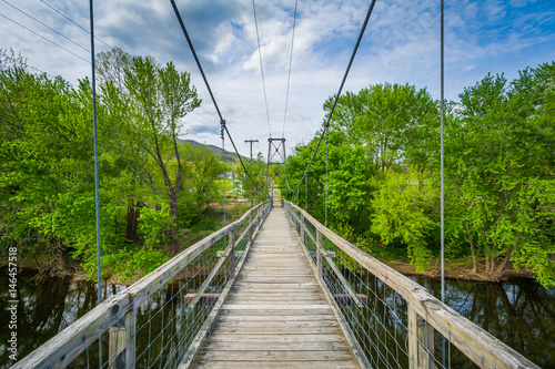 © jonbilous, Obraz premium Swinging pedestrian bridge over the James River in Buchanan, Virginia.