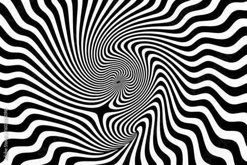 © exclusive_imagezone, Naklejka premium Swirl radial wavy line background in black and white with illusion optical pattern