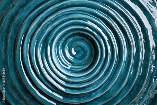 Obraz premium Swirled glossy blue ceramic with concentric texture