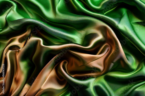 © Amore Sea, Obraz premium Swirled green colored fabric texture background. Abstract background.