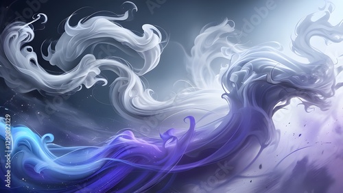 Fototapeta premium Swirling anime-style smoke and wind effects with dynamic flowing motion