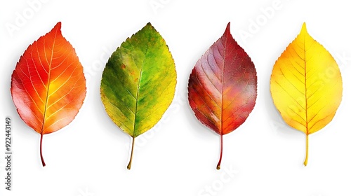 © Keattipoom, Fototapeta premium Swirling Autumn Leaves - Vibrant Foliage in Motion on White Background - Nature Sticker Design