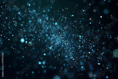 © waruna, Fototapeta premium Swirling blue particles, abstract bokeh background. Digital data.