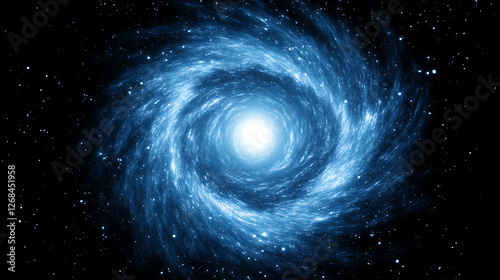 Fototapeta premium Swirling Celestial Blue Galaxy Radiating Intense Light and Energy in the...