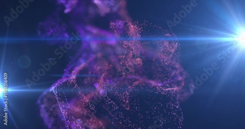 © vectorfusionart, Obraz premium Swirling central nebula drifting in CGI studio, with purple particles, streaks, blue-white flares