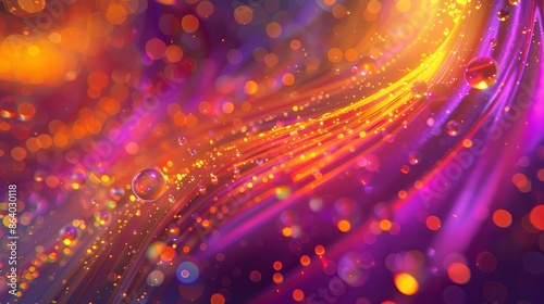Obraz premium Swirling champagne bubbles with neon highlights on a purple to orange gradient