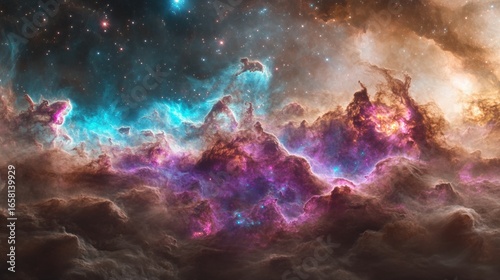 Fototapeta premium Swirling clouds of color in space create a stunning display of light and texture against a backdrop of countless stars
