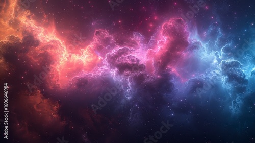 Fototapeta premium Swirling cosmic nebula with orange, pink, and blue hues against a dark starry background
