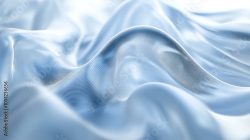 Obraz premium Swirling 3D technology trails form a mesmerizing abstract pattern on a white-light blue background, creating a stunning artistic display of innovation