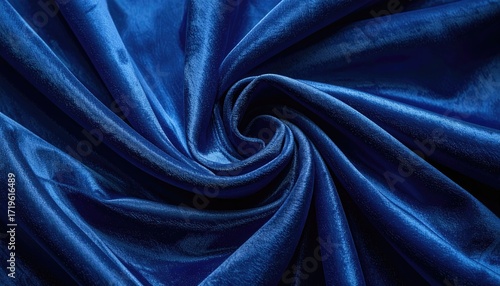 © Nurwahyuni, Fototapeta premium Swirling Deep Blue Velvet Fabric with Shimmering Sparkles Texture Rich Swirl Pattern