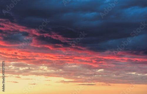 Fototapeta premium Swirling evening clouds illuminated by the setting sun