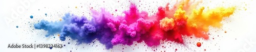 Fototapeta premium Swirling explosion of colorful Holi powder, isolated on white , stock photo, dust, colorful powder cloud