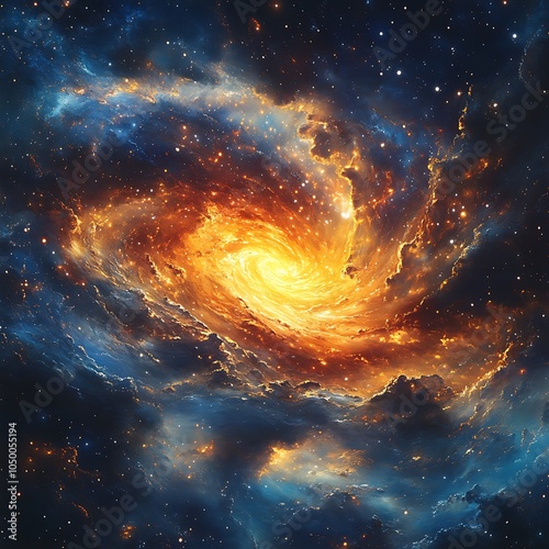 Obraz premium Swirling Galaxy Bright Deep Outer Space Vibrant Cosmic Wonders Vast Universe...