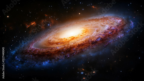 © Artem, Fototapeta premium Swirling galaxy with stars in vivid cosmic texture for space-themed design