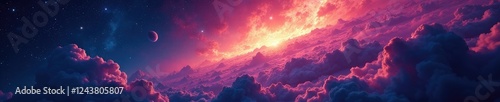 Naklejka premium Swirling gas clouds with starlight and planets, space, stars