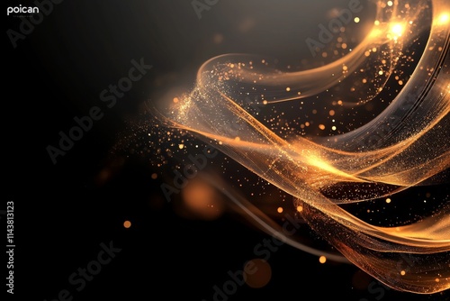 Obraz premium Swirling golden particles creating an ethereal light effect in a dark...