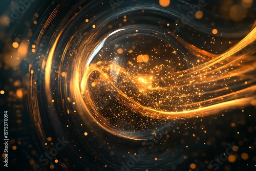 Obraz premium Swirling light streaks create energy with a galaxy of glowing particles on a dark backdrop