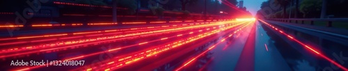 © Theerawat, Fototapeta premium Swirling light streaks simulating dynamic car taillights , background, warning, brake