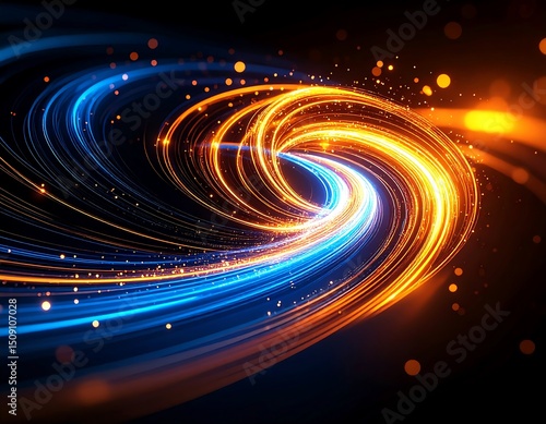 © Bagas, Obraz premium Swirling light trails create a vibrant, dynamic vortex against a dark background
