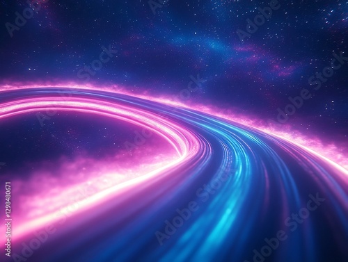 © Akash, Fototapeta premium swirling neon waves merging into futuristic space