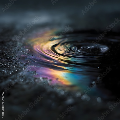 © Thares2020, Fototapeta premium Swirling oil slick on water surface creates a mesmerizing rainbow sheen