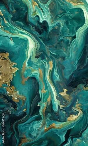 Fototapeta premium swirling pattern of turquoise and gold hues, creating a mesmerizing and...