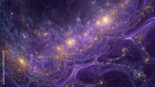 Fototapeta premium Swirling purple and gold cosmic dust galaxy