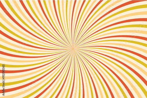 © VektroGFX, Fototapeta premium Swirling radial ice cream background. Orange groovy vortex spiral twirl. Twirl sunburst psychedelic pattern. Orange lollipop texture. Swirl candy background. Vector illustration