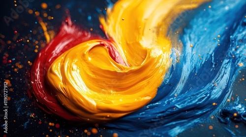 © RONNY, Fototapeta premium Swirling red, yellow, and blue paint.