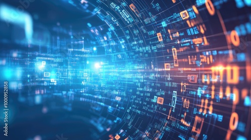 Obraz premium Swirling trails of digital data and glowing symbols form a captivating...