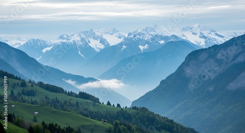 © nilo, Fototapeta premium Swiss Alps Mountain Range Landscape.