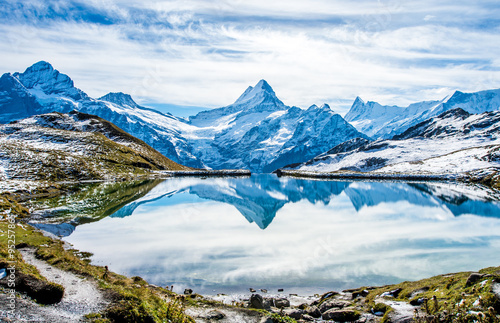 Obraz premium Swiss alps water reflection in Bachalpsee - mountain lake above Grindelwald,...