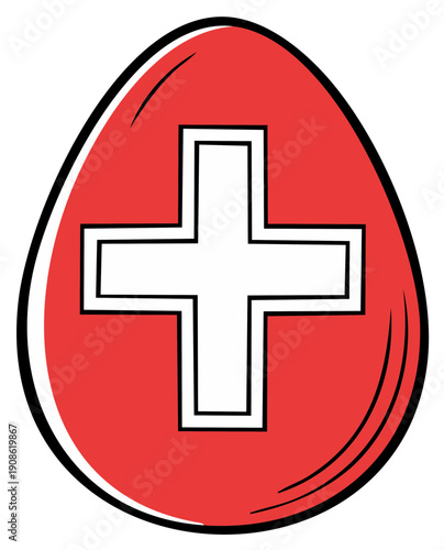 © Антонина Бабичева, Obraz premium Swiss flag design on a red Easter egg cartoon vector illustration