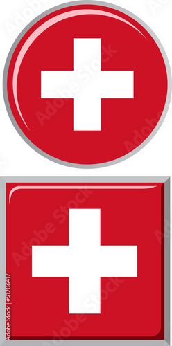 © Khvost, Obraz premium Swiss round and square icon flag. Vector illustration.