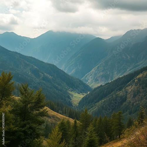 Fototapeta premium Swiss Serenity: A Panoramic Journey Through Majestic Alpine Landscapes,Ai...