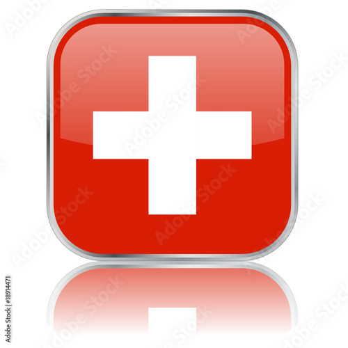 © HowLettery Studio, Obraz premium Swiss Square Flag Button (Switzerland - Vector - Reflection)