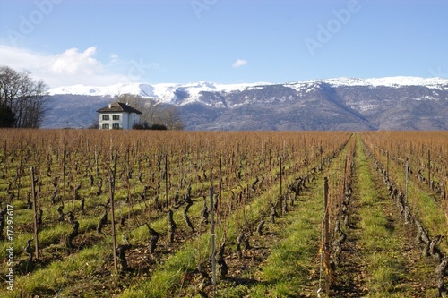 Fototapeta premium swiss vineyard landscape with rows of grapes