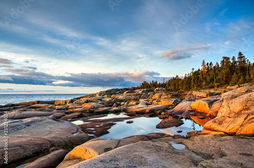 © David, Fototapeta premium Świt na skałach, rzeka St-Lawrence, Quebec, Kanada