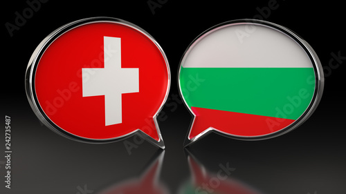 Fototapeta premium Switzerland and Bulgaria flags with Speech Bubbles. 3D illustration