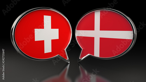 © klenger, Fototapeta premium Switzerland and Denmark flags with Speech Bubbles. 3D illustration