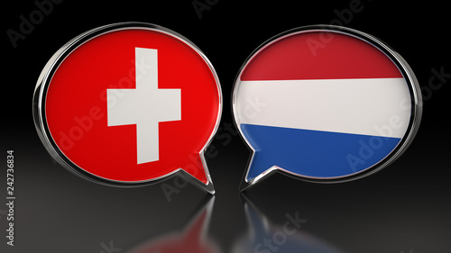 © klenger, Fototapeta premium Switzerland and Netherlands flags with Speech Bubbles. 3D illustration
