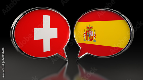 Fototapeta premium Switzerland and Spain flags with Speech Bubbles. 3D illustration