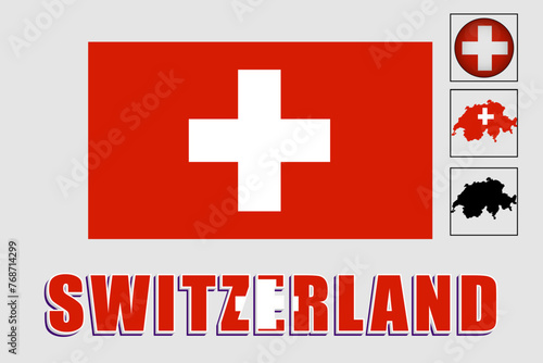 © Lutfar, Obraz premium Switzerland flag and map in a vector graphic